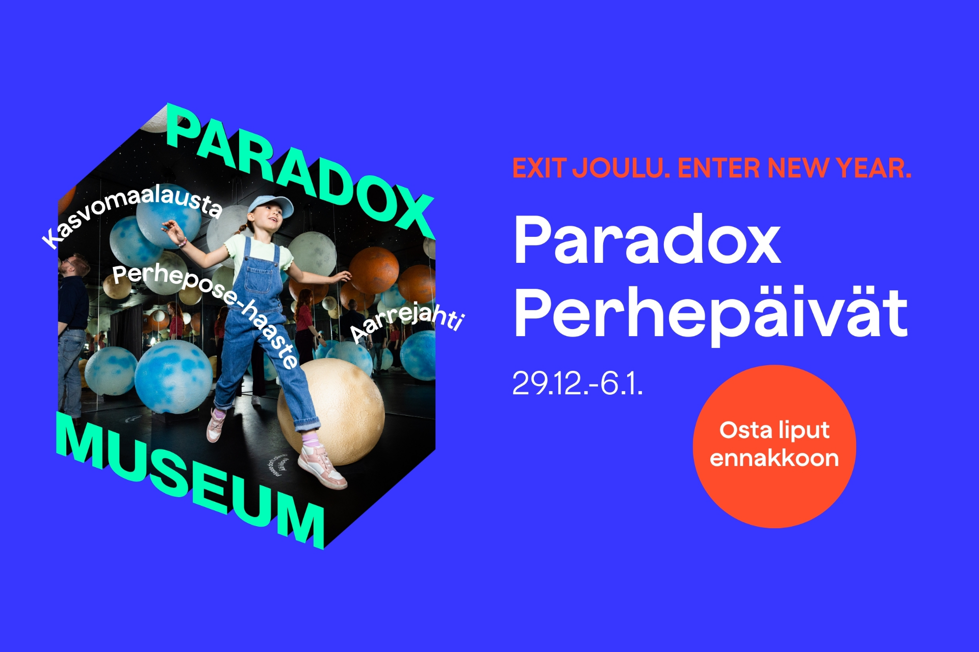 Perhepäivien aikana Paradoxilla on tarjolla kasvomaalausta, aarrejahti sekä perhepose-haaste museon omien kummallisuuksien, museokaupan sekä aktiviteettien lisäksi. Meille saapuu myös aivan erityinen vieraileva tähti, kun uudenvuoden aattona 31.12. Tallink Silja Linen iki-ihana Harri Hylje matkustaa moikkaamaan pieniä vieraita!